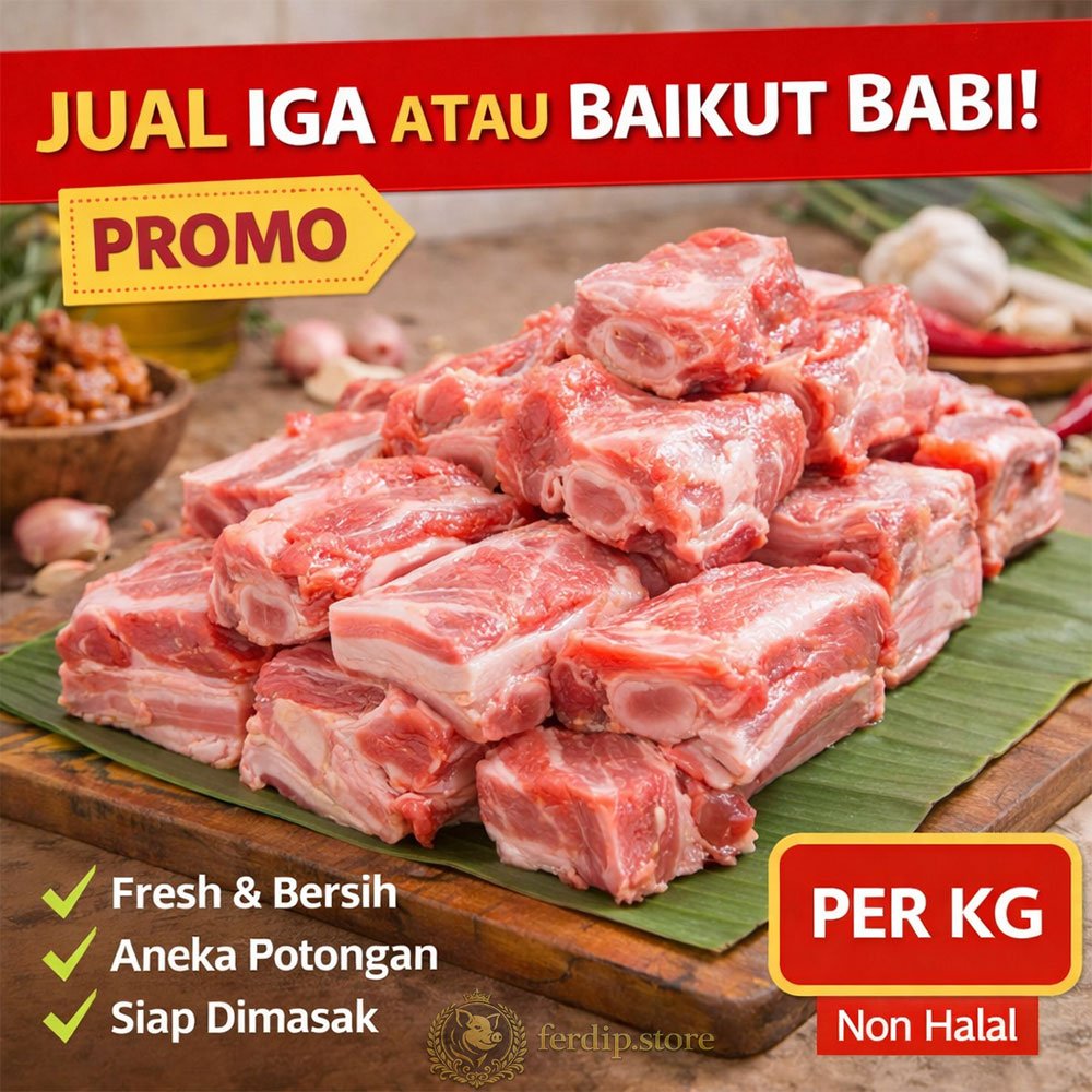 Daging Iga atau Baikut Babi kami diproses secara higienis dan dikemas dengan standar tinggi untuk menjaga kesegaran alami. Cocok untuk berbagai teknik memasak rumahan. mulai dari slow cooking, roasting, hingga sup yang memberikan hasil hidangan yang maksimal, baik untuk kebutuhan rumah tangga maupun dapur profesional.